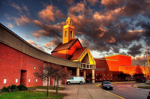 Students left the building at 1:07 p.m. after a fire alarm went off