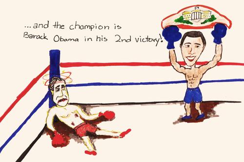 Barack Obama defeats Mitt Romney, 303 to 206, winning both Virginia and Ohio.