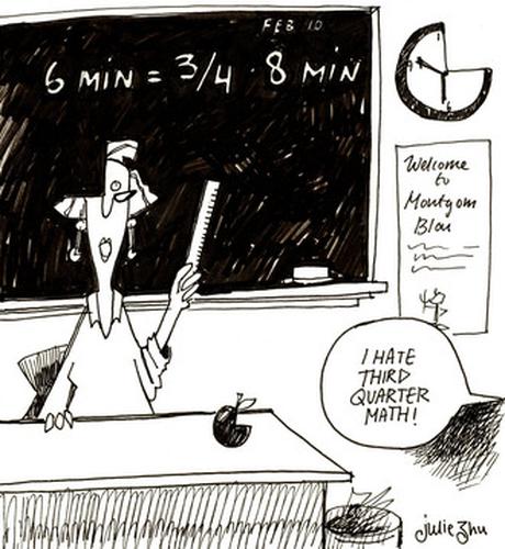 The break afforded to the average student between class periods is a holy time of sorts. Grapevines grow exponentially as myths are swapped, bathrooms are hurriedly visited, stairs are ascended, descended and jumped over and a little bit of academic stress is let out before the next class begins. As of two weeks ago, Blazers had this little pie piece of freedom and pressure relief relegated to a mere three quarters of its former glory - from eight minutes to six. Thinking upon this rather abrupt action, a responsible Blair student should consider the possibilities for other acts of shortening…before the bell rings that is.