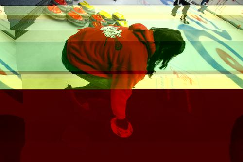 They all jump at exactly the same time. Crowds of people clad in red and white slam their bodies against the clear plastic, smearing their red face paint down the pane in long streaks. Screaming and clapping each other on the back, they congratulate the people gathered around them. The cause: A small black piece of plastic glided across the ice into the opponent's net.